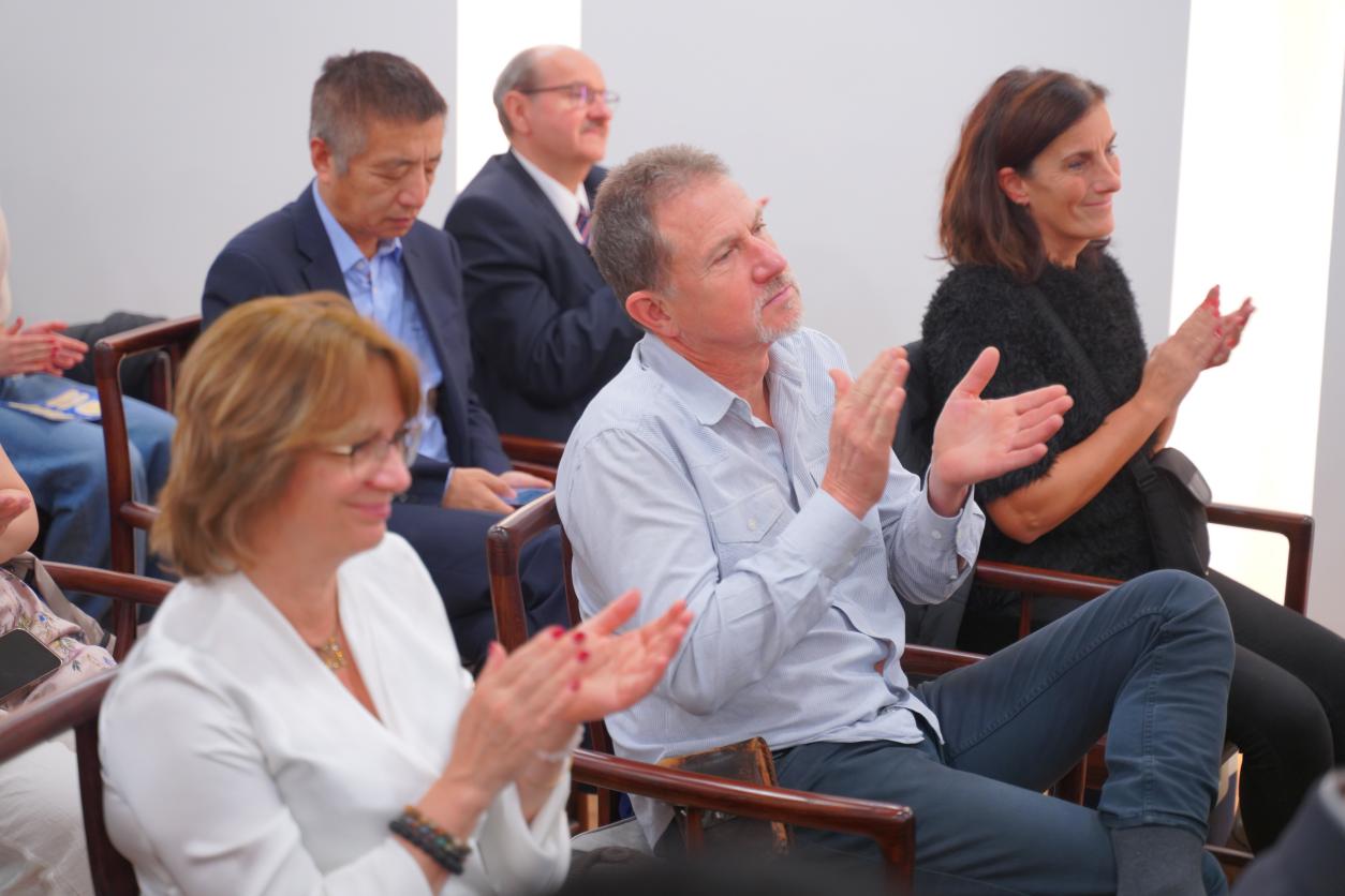 长笛演奏与小合唱的环节将晚会推向高潮。匈牙利长笛演奏家带来的《月亮代表我的心》《月光》,以及匈中双语学校12名学生的合唱《明天会更好》,不仅展现了音乐的魅力,也象征着中秋团圆与美好祝愿的深远意义,让晚会在一片热烈的掌声中圆满落幕。