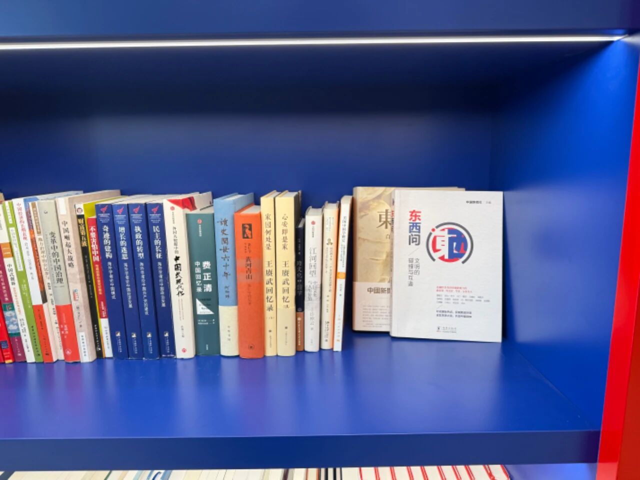 2025年10月14日,第二届世界中国学大会在上海开幕。会场设世界中国学优秀成果展,文明对话文献展。图为“东西问”出版物在展览区展陈。 中新社记者 韩禹 摄