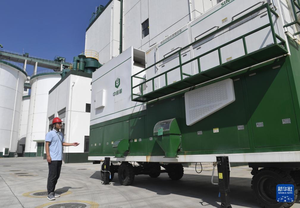 10月15日,在中储粮成都青白江仓储有限责任公司,技术人员介绍移动式组合清理设备。