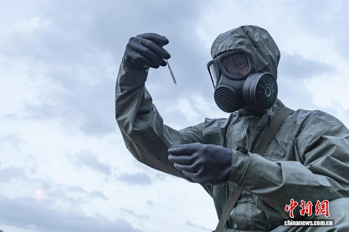 图为防化分队官兵正在进行采样侦毒。刘思远 摄