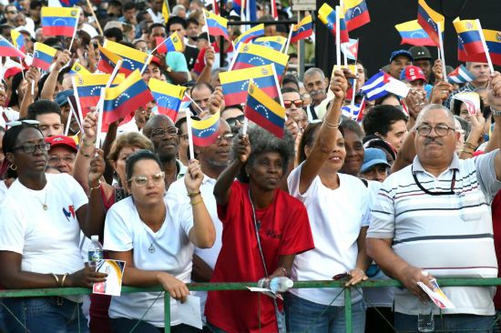 10月17日,在古巴首都哈瓦那,古巴民众挥舞旗帜参加集会。新华社发(华金·埃尔南德斯摄)