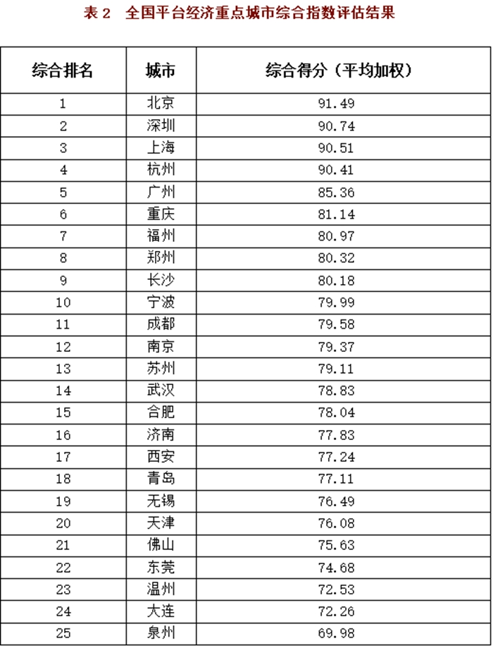 报告:北京、上海等四城构成平台经济“超强阵营”