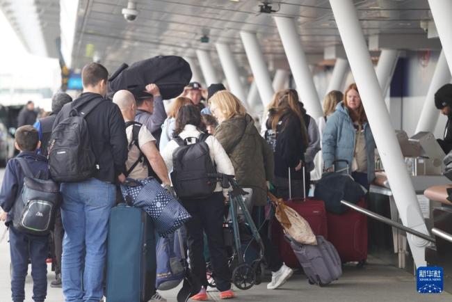 在肯尼迪国际机场,不仅可以看到乘客排队等候值机,还有飞机从机场起飞的情景。机场塔台和停机坪上的飞机也成为了这一特殊时期的见证。