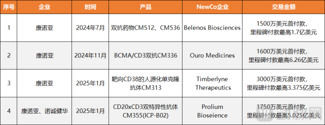 以康诺亚为例,在过去不到半年的时间里,其已经快速完成了4笔NewCo交易,获得了超过1亿美元的首付款收入,这很好地填补了其净利润缺口。除此之外,通过NewCo,康诺亚还成功将5款处于临床早期阶段的产品管线成功推向海外市场,并获得了海外新公司的部分股权,进一步拓展了国际布局与资本运作空间。根据2025年半年报显示,康诺亚净利润亏损0.79亿美元,同比增长76.59%,有很大希望在今年年底扭亏为盈。
