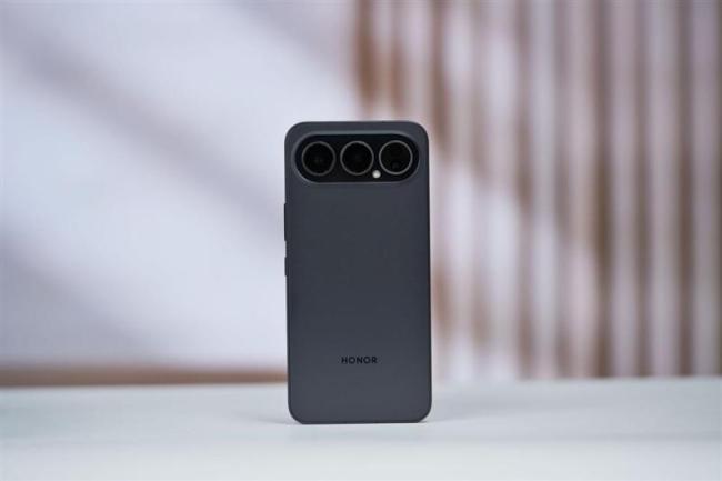 外观方面,荣耀500 Pro采用一体冷雕直屏设计,背部配色灵感来自晶莹剔透的水晶,手中的“曜石黑”配色显得沉稳而富有质感。相机玻璃采用与iPhone同款的一体冷雕工艺,整块玻璃一体成型,曲面过渡丝滑。镜头模组从左置三角改为横置模式,缩小主板面积为电池腾出空间。横握时,相机可以作为握把,提升握持舒适度。顶部设有双MIC口和扬声器开孔,音质出色。右侧除了电源键和音量键外,还有一颗额外的AI按键,触感接近侧边指纹。