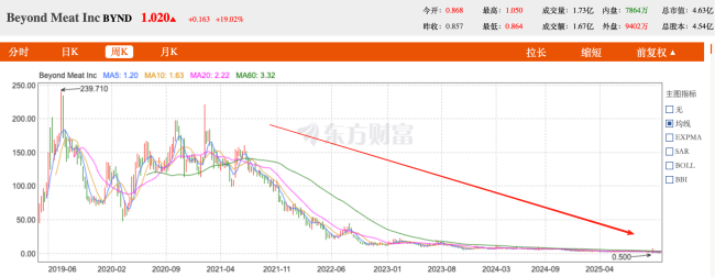 而天猫旗舰店的歇业,也折射出包括被誉为“人造肉第一股”的别样肉客(BeyondMeat)在内的人造肉赛道崩塌。
