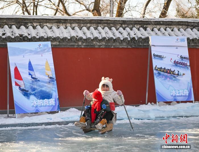 12月11日,“花式过冬 嗨游辽宁”2025冬游辽宁消费季主场活动暨抚顺市“高铁入画 热雪迎宾”系列冰雪活动启动仪式在辽宁省抚顺市新宾满族自治县启幕。图为市民在滑冰车。中新社记者 于海洋 摄