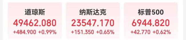 当地时间1月6日,美股三大指数集体收涨,道指上涨0.99%,纳指上涨0.65%,标普500指数上涨0.62%。其中,道指和标普500指数均创下历史收盘新高。费城半导体指数上涨2.75%,也创下了历史新高。