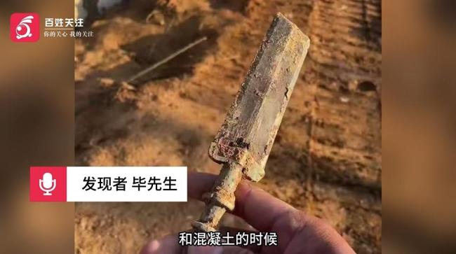 1月15日,湖北黄冈一男子在浠水县绿杨乡工地施工时挖出一把青铜古剑,并主动将其上交给了博物馆。毕先生回忆说,在工地施工时,挖机运混凝土的过程中掉了一坨泥巴,他发现里面有一个绿色的东西,仔细一看竟然是一把剑。这把剑的剑柄是绿色且发亮的,样式像竹节,看起来像是战国时期的青铜剑。当天早上他就将这把剑送到了浠水县博物馆。