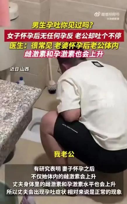 近日,山西的杨女士表示,自己怀孕后无任何孕反,其老公却孕吐不停。