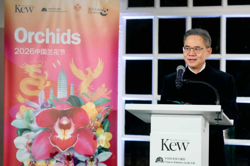 中国驻英国大使郑泽光出席开幕活动并致辞。他表示,兰花在中英两国都深受喜爱。在中国文化中,兰花被誉为“四君子”之一,象征高洁与坚韧。清代诗人郑板桥曾写道:“此花清绝有幽姿,不慕名利爱烟霞。”兰花所承载的精神品格,体现了中华文化对自然与人格理想的追求。