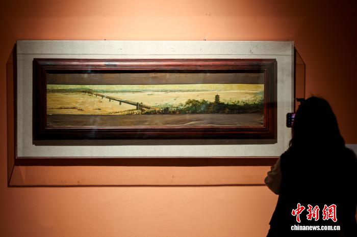 4月1日,湖北武汉,观众参观展出的国画作品《南北天堑变通途》。 中新社记者 张畅 摄