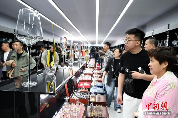 图为与会人员参观祁县玻璃器皿产品。张钰佳 摄