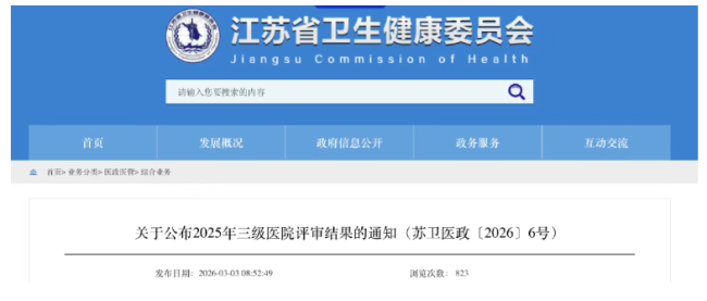 3月,江苏省卫健委发布《关于公布2025年三级医院评审结果的通知》,确定无锡市人民医院、常州市第二人民医院、苏州市立医院、宿迁市第一人民医院、邳州市人民医院、张家港市第一人民医院、昆山市第一人民医院、海安市人民医院、泰康仙林鼓楼医院、沭阳医院为三级甲等综合医院。