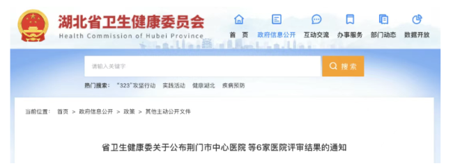 更早之前,湖北省卫健委发布消息,确定荆门市中心医院等4家医院为三级甲等医院,其中武汉市东西湖区人民医院为初审通过。
