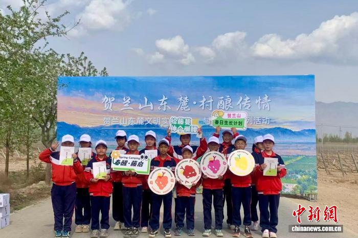 中新网银川4月15日电 (李佩珊 李晓歌)春风拂过贺兰山东麓,万亩葡萄园渐焕生机。4月15日,一场别开生面的酿酒葡萄展藤研学实践活动在宁夏戈兰酒庄葡萄种植基地热闹开启。来自银川市西夏区华西希望小学的100余名学生走出课堂、踏入田间,在春耕时节的葡萄园里开启了一场别开生面的劳动与文化研学之旅。