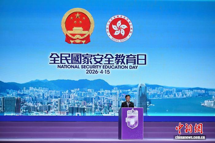 4月15日,香港举办2026年全民国家安全教育日开幕典礼暨主题讲座。图为香港特别行政区行政长官、香港特别行政区维护国家安全委员会主席李家超发表致辞。中新社记者 李志华 摄