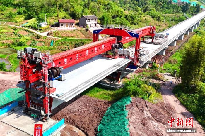 中新网成都4月17日电 (记者 刘忠俊)4月17日,随着最后一孔长32米、重约700吨的箱梁稳稳落在西安至重庆高铁(以下简称“西渝高铁”)双碉楼特大桥第18孔桥墩上,西渝高铁达州至广安段箱梁架设工作顺利完成,为下一步无砟轨道施工和铺轨作业创造了有利条件。