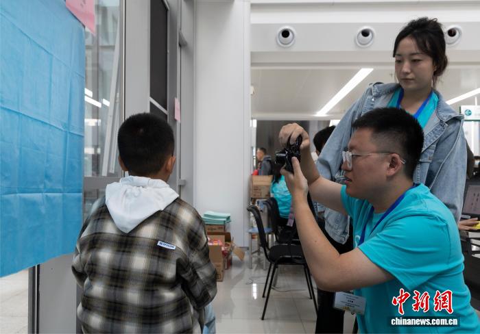 图为工作人员为患儿拍照。中新社记者 杨迪 摄 图为专家为患儿做口腔检查。中新社记者 杨迪 摄