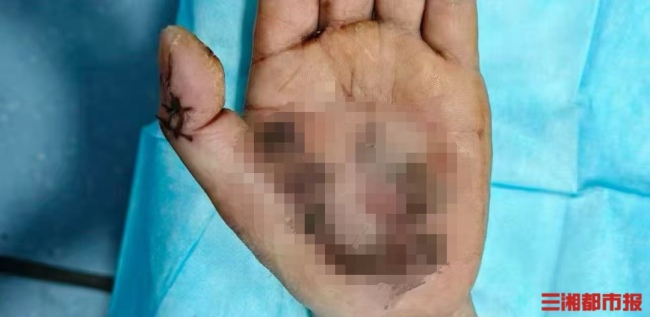 在野外作业时,38岁的泵车司机何师傅误入高压塔下方洗手,遭遇电击,受伤严重。经过一个月的治疗,目前他已顺利康复出院。何师傅回忆,当时他洗手后脚踩积水地面,被电流击中后,手心、双脚脚趾严重灼伤碳化,创面血肉模糊