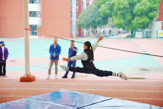 高校推广扁带运动 旋转跳跃身轻如燕!