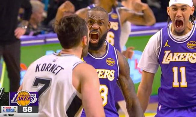 在北京时间今日的NBA杯1/4决赛中,洛杉矶湖人队主场以119-132输给圣安东尼奥马刺队,未能晋级四强。湖人队球星勒布朗-詹姆斯出场36分26秒,14投7中得到19分、15个篮板、8次助攻和3次盖帽