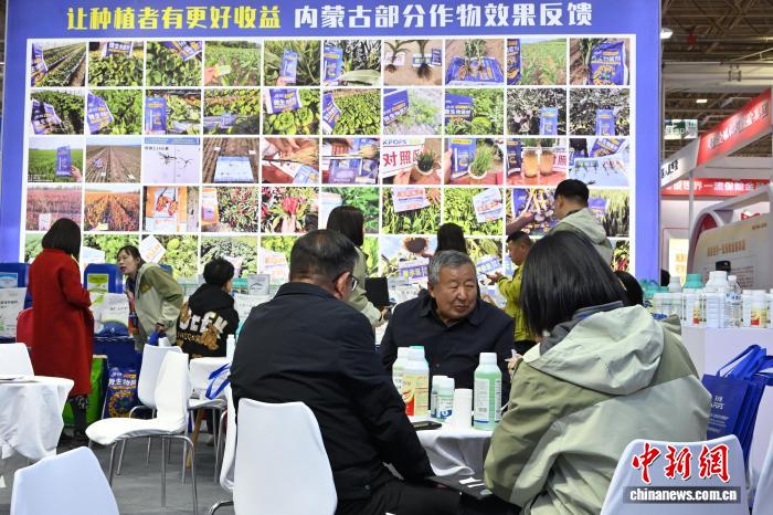 3月26日,内蒙古呼和浩特市,展商介绍产品。中新社记者 刘文华摄 3月26日,内蒙古呼和浩特市,一位女士与农机合影。中新社记者 刘文华摄