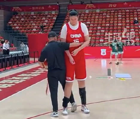 2米26张子宇赛前拉伸轻松触篮板 像在恐吓对手