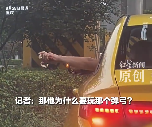 9月28日,有网友发视频曝光,重庆一位出租车司机在等红灯期间向窗外打弹弓,“足足瞄了5秒钟”。出租车公司工作人员告诉红星新闻记者,该事件发生在28日早上,“在打什么,为什么打”他们已经联系司机回公司了解情况。工作人员表示,司机的行为违反了公...